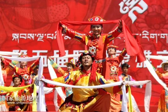 國家旅游地理 西藏阿里8月3日訊 8月3日,當(dāng)?shù)厝罕娫陂_幕式上表演富有民族特色的歌舞《美麗的阿里》。當(dāng)日,西藏阿里地區(qū)第五屆象雄文化旅游節(jié)在獅泉河文化廣場開幕。此次文化旅游節(jié)將舉辦阿里象雄文化研討會、旅游紀(jì)念品展覽、攝影展等十余項(xiàng)活動(dòng)?! ? 新華社發(fā)(蔣先平 攝)