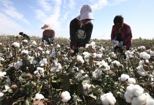 新疆哈密20余萬(wàn)畝棉花陸續(xù)進(jìn)入采摘期(圖)