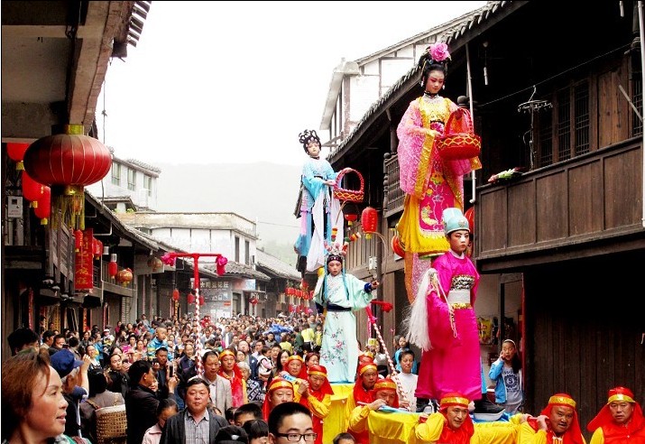 國家旅游地理 四川江油5月3日訊(記者 李方貴 文/圖) “來了!來了!好美?。?rdquo;昨(2)日上午,平日略顯冷清的江油市二郎廟鎮(zhèn)青林口村人潮涌動(dòng),萬人空巷。入選國家級非物質(zhì)文化遺產(chǎn)的“高抬戲”沉寂6年之后,在今年“五一”小長假期間“復(fù)活”了。
