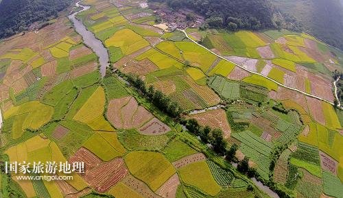 國家旅游地理 廣西柳州8月21日訊 8月20日在廣西柳州市融安縣泗頂鎮(zhèn)泗頂村航拍的田園風(fēng)光。“立秋”過后,地處桂北山區(qū)的廣西柳州市融安縣進(jìn)入稻谷收獲的季節(jié),金黃的稻田與原生態(tài)的山水風(fēng)光構(gòu)成一幅美麗的豐收?qǐng)D。新華社發(fā)(譚凱興 攝)
