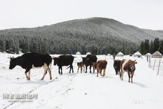 國(guó)家旅游地理 新疆哈密5月31日訊 5月31日,新疆哈密一位牧民在雪中放牧。當(dāng)日,受冷空氣影響,新疆哈密北部沿天山一帶出現(xiàn)了降雪降溫天氣,給五月的天山披上銀裝。 /新華社發(fā)(普拉提 攝)